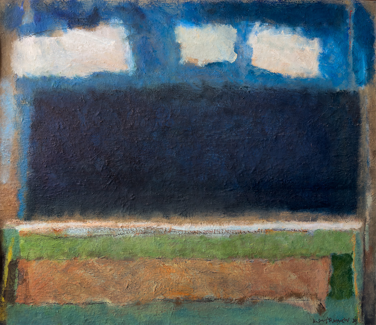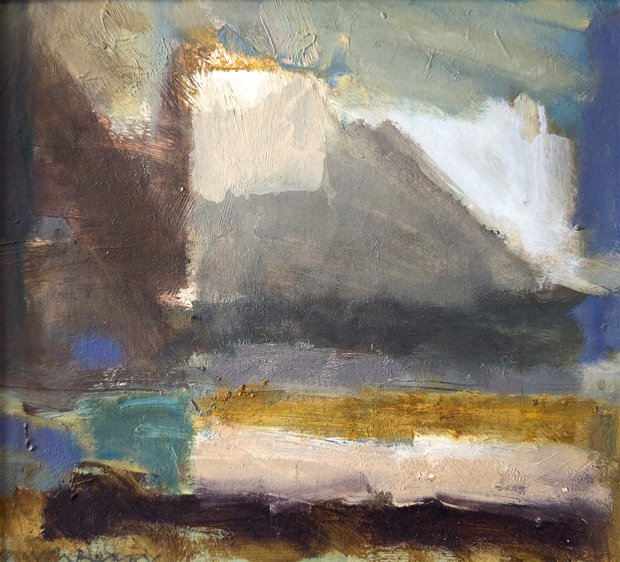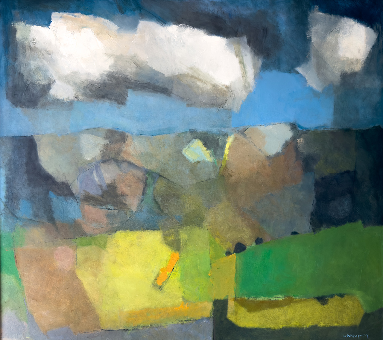 Much of Keith’s work is oil based semi-abstract landscape. He is very much influenced by the flat lands and fens of south Lincolnshire. Earlier influences were more southerly from the Solent estuary, the Isle of Wight and the New Forest area. He works in the studio from sketches and the odd photograph as an aid-memoir. The main objective for him is to create a feeling of mood and atmosphere in the picture through colour, shape and in particular the application of pastel or paint on the paper or canvas. The sky and weather are also a feature in the creation of mood and sensitivity.
